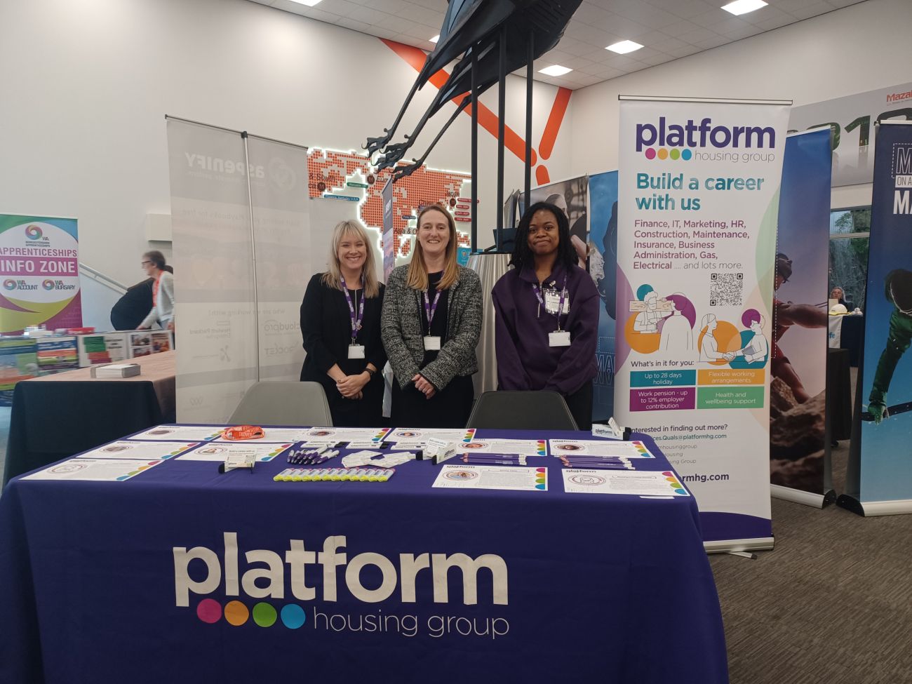Photo caption : L to r, Tamara Fyffe, Director of Enterprise Solutions; Kirsty Dyer, Head of EPMO and Latisha Bailey, Technology Apprentice, all from Platform Housing Group and instrumental at assisting on the day.